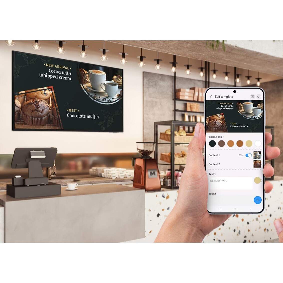 - Avec l'application Samsung Business TV, vous gérez et contrôlez facilement votre contenu depuis votre mobile connecté au même réseau local.