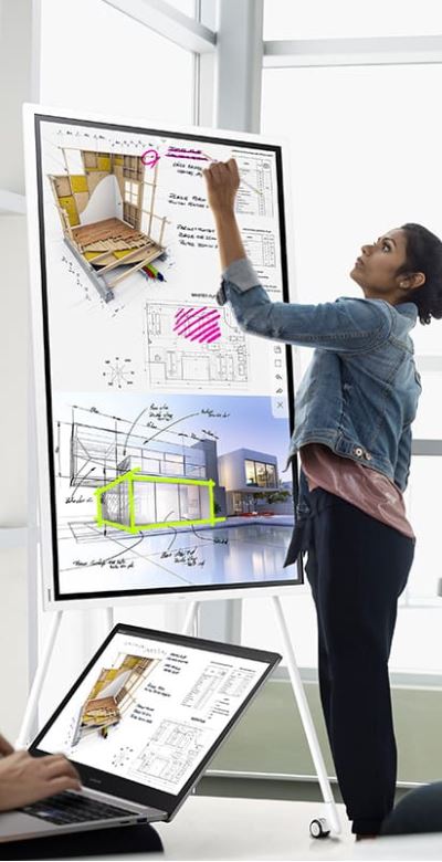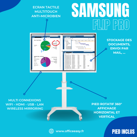 Sur un salon ou dans une foire, il n’est parfois pas évident de créer des présentations efficaces. Le tableau blanc interactif Samsung Flip Pro apporte alors toutes les solutions : à roulette, il s’installe et se déplace facilement. Interactif, il incite les visiteurs à participer à la démonstration. Enfin, son utilisation peut permettre à un collaborateur absent du salon de fournir des documents précis et donc des réponses adaptées aux questions des visiteurs.