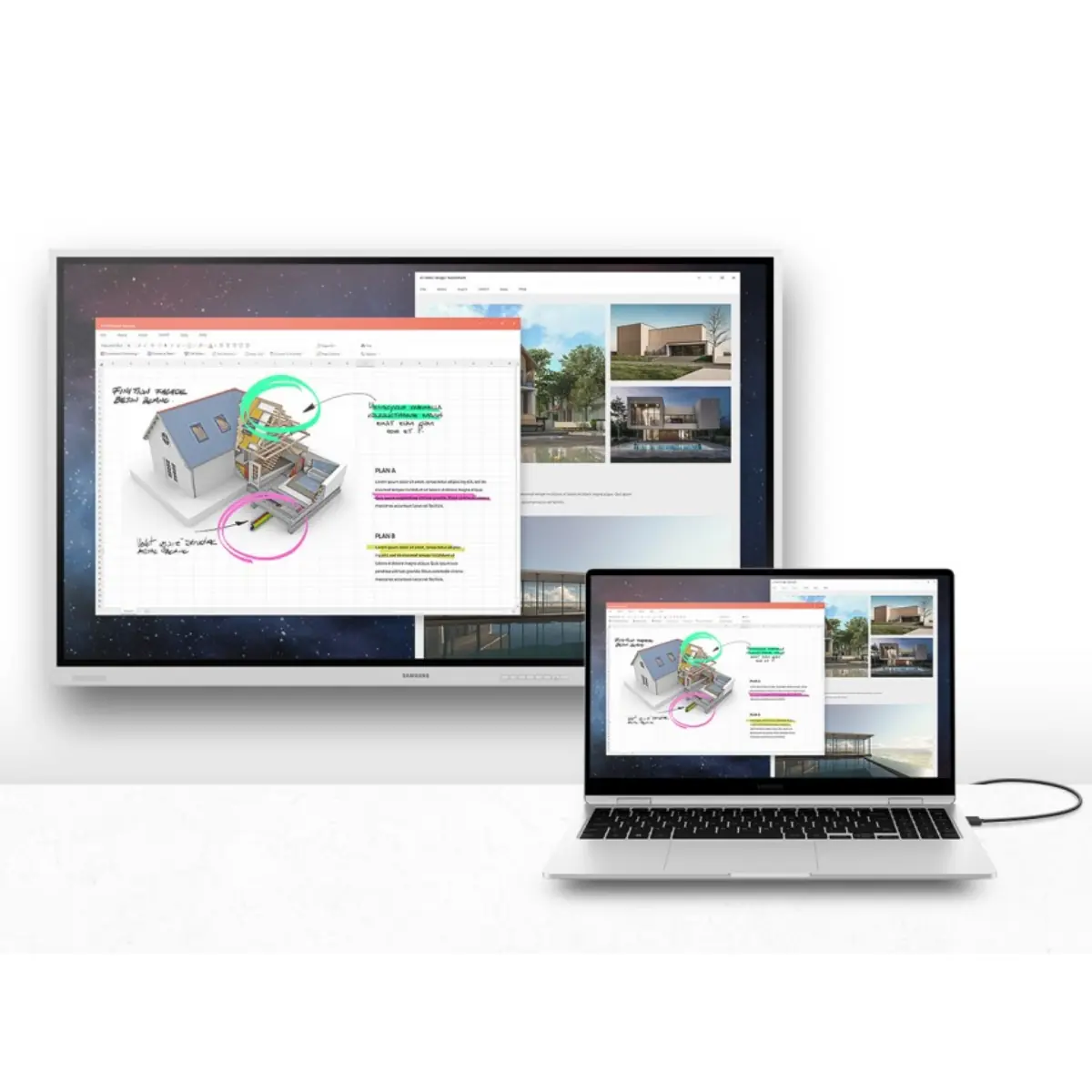 Le Samsung WAX-P 86'' (diagonale de 218 cm) est un grand écran interactif conçu pour la collaboration et les visioconférences. Grâce à ses nombreuses fonctionnalités, il trouve aussi bien sa place dans une salle de réunion que dans une salle de classe.