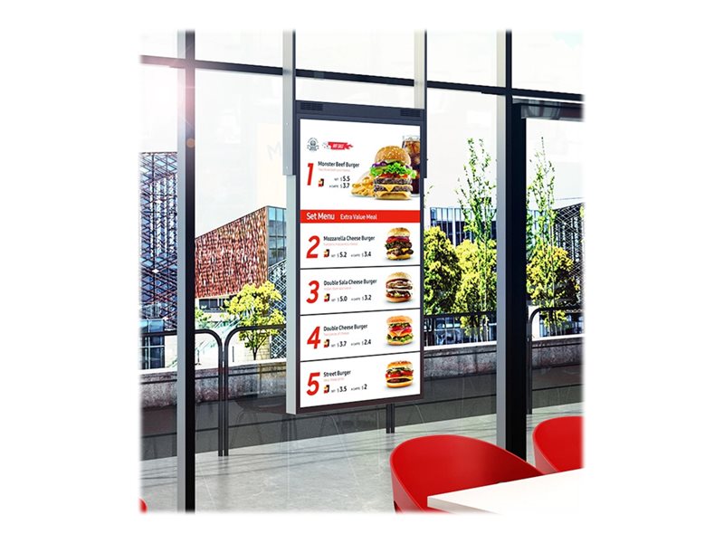 La luminosité ultra élevée de l'écran OM55N-DS est vraiment conçu pour pour un double usage vitrine et vers l'intérieur :