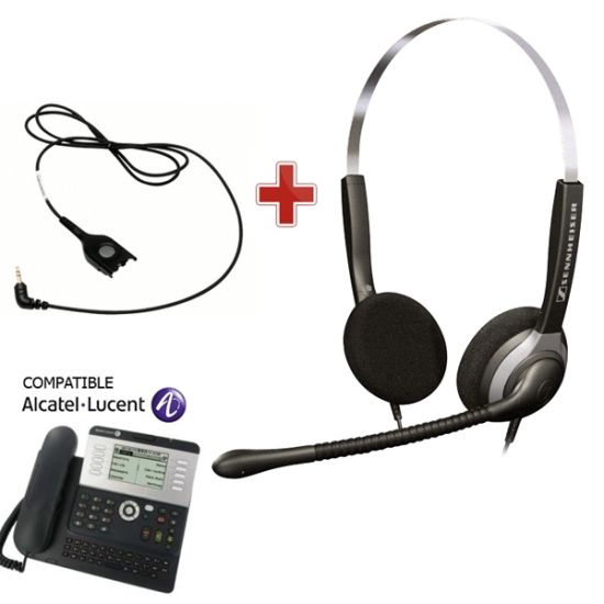 Le casque téléphonique Sennheiser SH250 pour Alcatel est livré avec le cordon jack 3.5mm de raccordement aux poste téléphoniques Alcatel Serie 8 et 9.