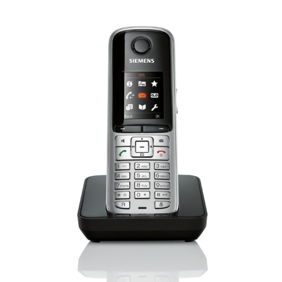 Doté de fonctionnalités haut de gamme telles qu'un répertoire téléphonique de grande capacité, d'une fonction de transmission de données via un port USB, ainsi que d'une messagerie textuelle, le téléphone sans-fil SIEMENS Gigaset S79H vous assure de rester au contact de vos clients avec une facilité inédite. Avec son répertoire d'une capacité de 500 contacts, vous n'avez plus besoin de trier vos contacts par priorité puisque vous pouvez désormais les inclure en totalité. Intégrant un port mini-USB, ce téléphone sans-fil vous permet de synchroniser vos contacts rapidement et facilement. Les fonctions mains-libres haute qualité et SMS ainsi que l'afficheur couleurs rétro-éclairé de ce téléphone sans-fil professionnel vous apporteront un réel confort d'utilisation au quotidien.