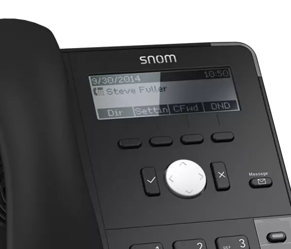 Le D712 de SNOM dispose d'un écran noir et blanc à 4 lignes avec une interface intuitive, ainsi que de 4 touches de fonction contextuelles programmables.