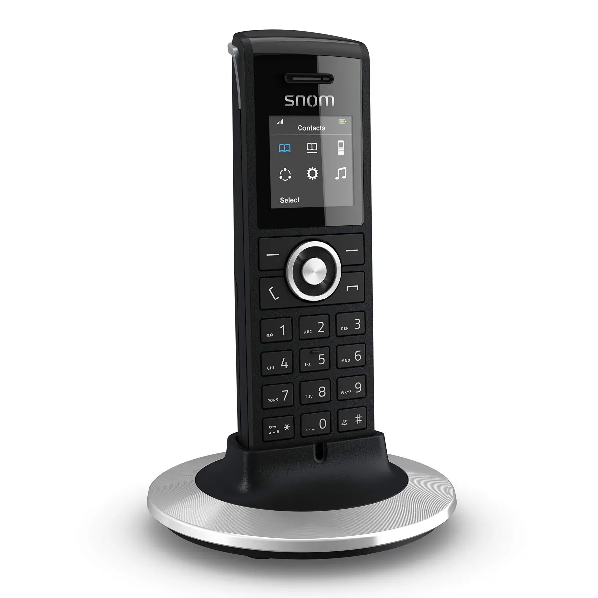 Le combiné Snom M25 fournit avec la base dispose quant à lui de caractéristiques attendues d'un téléphone sans fil professionnel, telles que les options de gestion d'appel, un répertoire conséquent, et une navigation intuitive.