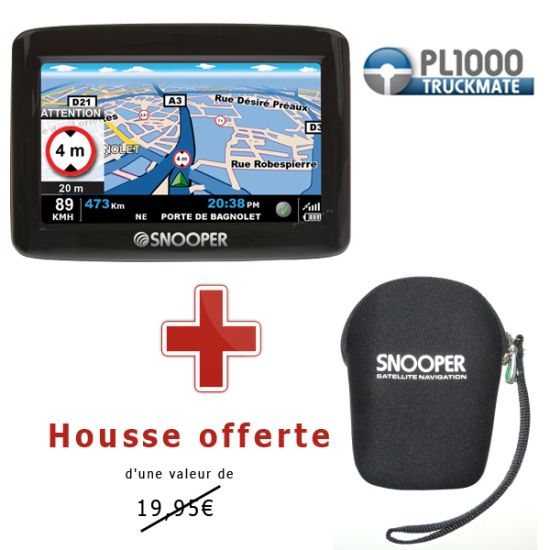 Le Snooper PL1000, spécialement conçu pour les poids lourds, prend en compte la hauteur, la longueur, la largeur et le poids du véhicule pour vous guider par la route appropriée. Il ne s'agit plus de vous indiquer simplement la hauteur des ponts à l'avance mais bien de les contourner ! Ainsi, une fois le gabarit renseigné dans le navigateur GPS PL1000, vous serez guidé directement à bon port sans surprise.