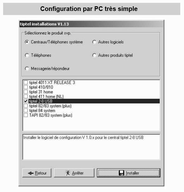 Très facile à installer, le Tiptel 2/8 est également très facile à configurer grâce à sa prise USB qui vous permet de paramétrer et de modifier aisément la configuration de votre standard ou le contenu de votre répertoire de numéros.