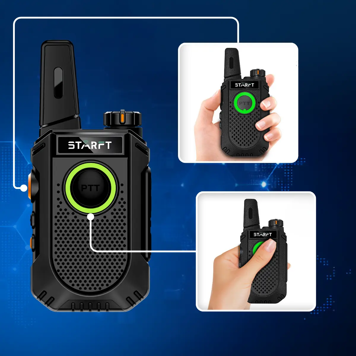 Le Starft T446 Pro est un talkie-walkie polyvalent qui allie robustesse et compacité. Conçu pour répondre aux besoins variés des professionnels et des amateurs de plein air, sa construction en polypropylène noir résistant lui confère une durabilité remarquable tout en restant léger et facile à transporter.