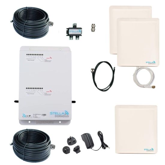 Le Stella Doradus R2-SOHO est une solution complète pour améliorer la couverture réseau mobile 4G (800 MHz) et 2G/3G (900 MHz) à l’intérieur de votre maison ou bureau. Ce kit inclut une antenne extérieure, deux antennes intérieures, et des câbles adaptés pour une couverture optimale jusqu’à 200 m² répartis sur 1 à 3 pièces.