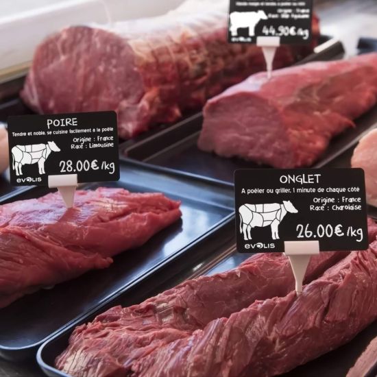 Ce support pique fin est spécialement conçu pour mettre en valeur vos étiquettes de prix dans les vitrines et étals de commerces de bouche : boulangeries, boucheries, traiteurs, fromageries, poissonneries, etc.