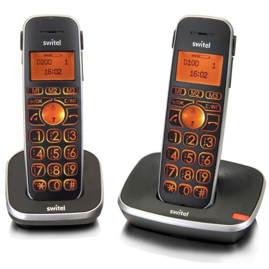 SWITEL avec le D102 propose est un ensemble de combinés téléphoniques, tous deux avec clavier et écran. Ce pack se compose d'un téléphone sans fil DECT SWITEL D100, téléphone à grosses touches et volume sonore augmenté, et d'un combiné supplémentaire D10, petit frère du D100 identique à celui ci si ce n'est la base qui change.