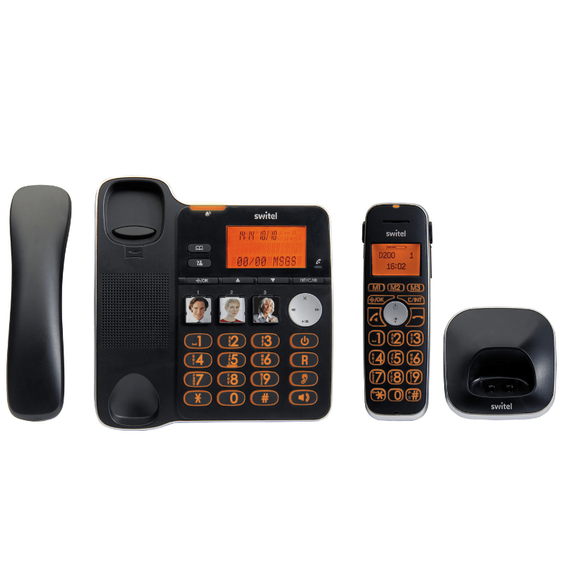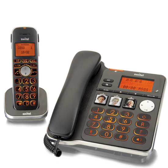 Le switel D200 est un ensemble de téléphones : un téléphone fixe filaire sur sa base facile à utiliser et un téléphone sans fil et son socle que vous pourrez poser dans toutes autres pièces