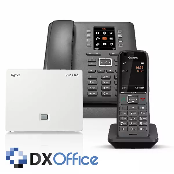 L'offre DXOFFICE est composée d'une borne DECT N510IP Pro, de 1 à 6 postes téléphoniques DECT fixe ou sans fil