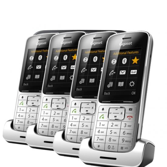 La solution DECT Quatro se compose de 4 postes et d'une base DECT. Pack idéal pour les petites structures, les 4 combinés DECT Gigaset offrent jusque 50 mètres de portée depuis leur base déportée.