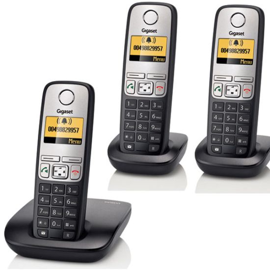 Téléphone sans-fil Gigaset A400 Trio : pack de 3 téléphones sans fil avec fonction mains-libres, affichage grands caractères, clavier ergonomique et répertoire 80 contacts.