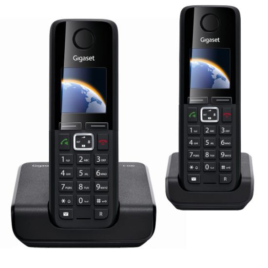 Téléphone sans-fil Gigaset C300 Duo : pack de 2 téléphones sans fil avec fonction mains-libres, grand écran couleur, clavier ergonomique et répertoire 250 contacts.