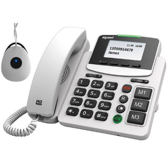 Afin d'apporter davantage de sécurité aux seniors, un émetteur radio pour appel d'urgence est fourni avec le Tiptel 3220XLR. Celui-ci se porte en médaillon afin de l'avoir sous la main en permanence, le téléphone est quant à lui doté d'une touche SOS avec message vocal. Il est en outre possible de connecter jusqu'à 10 émetteurs différents sur le même combiné, ce qui fait du 3220XLR un appareil particulièrement adapté auxétablissements de santé et aux maisons de retraite.