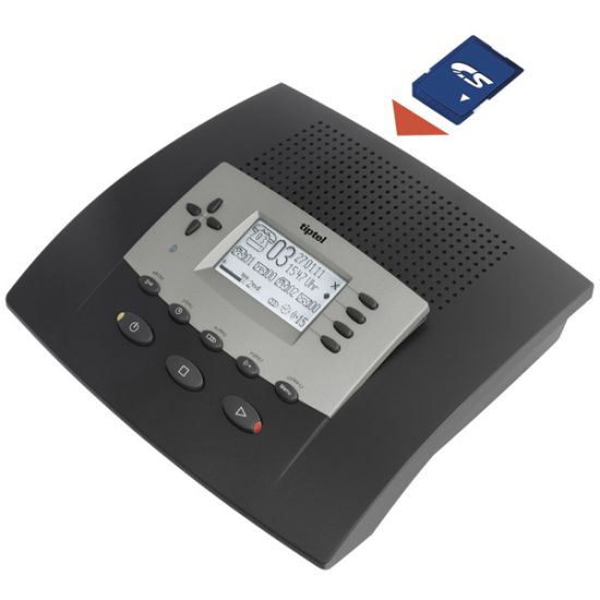 Le tiptel 545 SD peut également enregistrer vos appels avec une sauvegarde possible sur PC (via connexion USB). Il offre une capacité d'enregistrement de 16h sur carte SD et peut également gérer l'envoi et la réception de vos SMS*