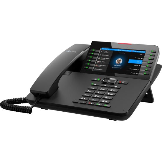 Découvrez le téléphone haut de gamme Unify Openscape Desk Phone CP710 et ses nombreuses fonctionnalités. D'aspect, le téléphone est ultra design. Des touches Led, un large écran couleur de 5 pouces, et une grosse Led en haut de l'appareil permettant d'avertir visuellement d'un appel. Le téléphone dispose d'un total de 12 touches autour de l'écran, dont 6 de ligne programmables.