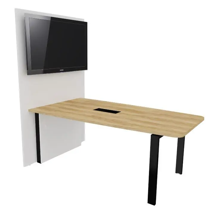 La table de réunion Buronomic Visio Hub a été conçue de manière à intégrer un écran, jusqu'à 50 pouces, destiné à projeter vos présentations ou vos visioconférences. Cette table ajoute une touche design à vos bureaux tout en masquant l'ensemble des câbles nécessaires au fonctionnement de l'écran, caméras de visioconférence et de vos PC.