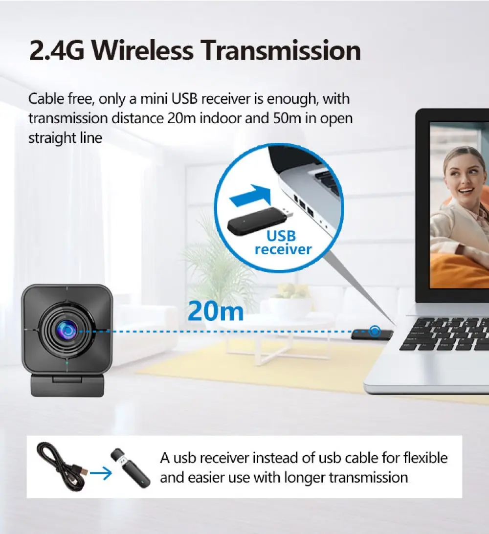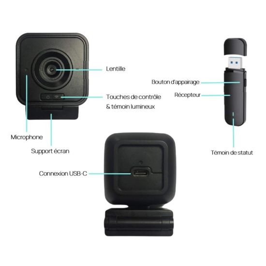 Avec une autonomie sur batterie de 3h en utilisation, vous pouvez vous déplacer dans un rayon de 20 mètres en intérieur, et de 50 mètres en extérieur, sans perdre la connexion. Ainsi, vous pouvez faire visiter un showroom, présenter des produits, ou simplement changer d'angle de vue au cours d'une réunion. Contrairement aux modèles de caméras Bluetooth, cette webcam Wifi offre une connexion plus stable, même sur une grande distance.