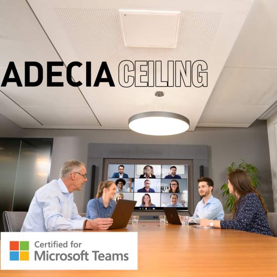 La solution Adecia Ceiling propose un microphone de plafond pour une intégration discrète dans le décor de votre entreprise. Elle se fond parfaitement dans un espace de travail haut de gamme, élégant et minimaliste. Si votre salle est destinée à être mobile et à changer de configuration régulièrement, le microphone de plafond s'avère une bonne alternative.