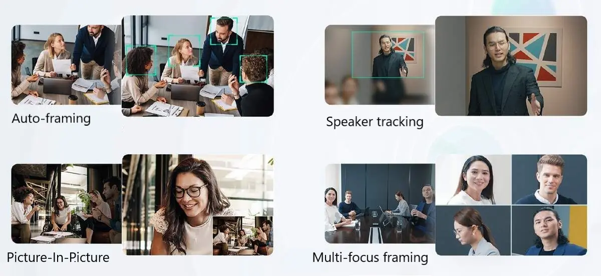 Avec une caméra avec intelligence artificielle intégrée, elle a un auto framing et repère l'orateur pour le suivre. Un autre mode appelé "cadrage multi-focus" permet d'afficher de façon individuelle les participants sous forme de vignettes. La caméra possède un grand angle de vue de 151° et optimise la luminosité des visages.