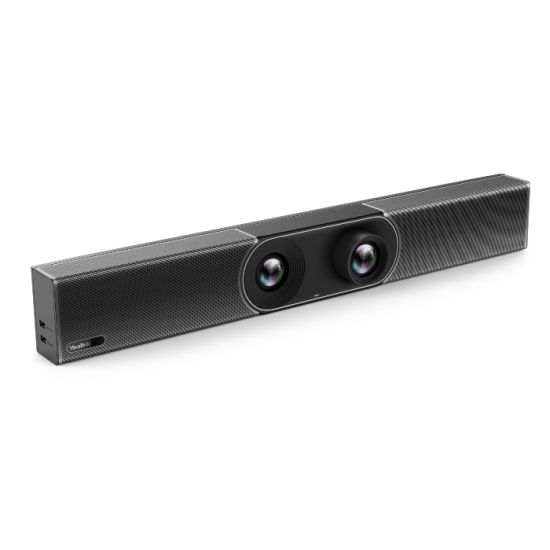 Pensée pour les salles de réunion de taille moyenne, la barre A30 avec tablette de commande tactile est un outil de visioconférence autonome doté d'une double caméra, de microphones, de haut-parleurs et d'un codec. La caméra 8 Mpx et l'objectif grand angle de 120° permettent une qualité vidéo exceptionnelle. Les technologies IA offrent le cadrage automatique et le suivi de l'orateur.