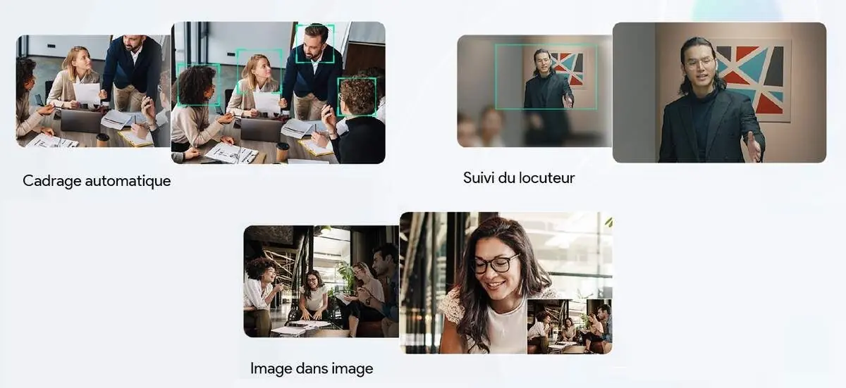 Un autre mode appelé "picture-in-picture" permet de zoomer sur l'orateur, tout en gardant une vue sur l'ensemble de la salle.
