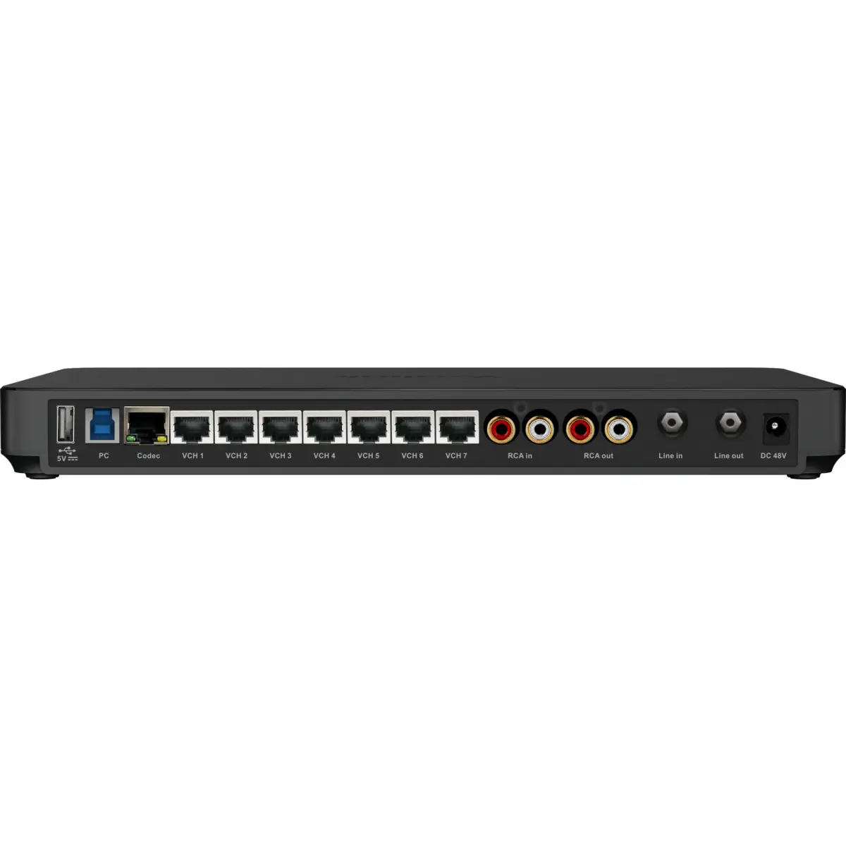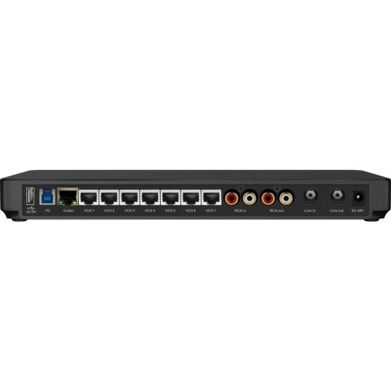 AVHub dispose de 7 ports RJ45. Les caméras, les microphones et les haut-parleurs peuvent y être connectés directement via des câbles PoE, ce qui réduit le nombre de câbles. Le port CODEC est utilisé si vous souhaitez une configuration de salle divisible.