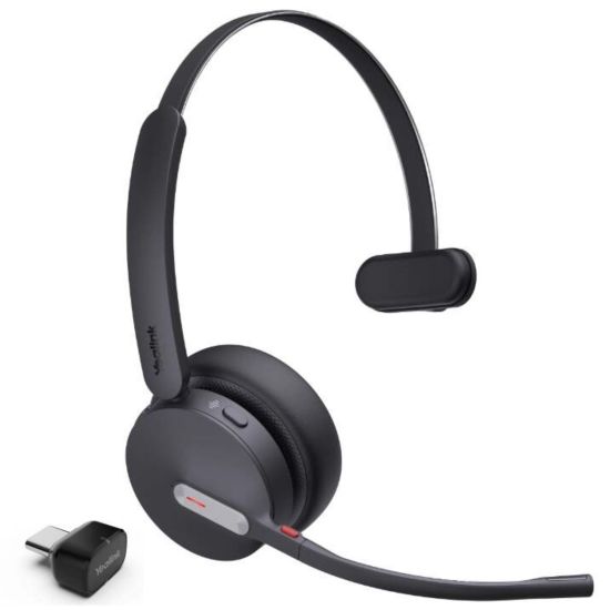 Casque arceau, mono, Bluetooth, avec perche micro à réduction de bruit ambiant. Livré avec un dongle USB-C pour une connexion à votre PC ou téléphone de bureau.