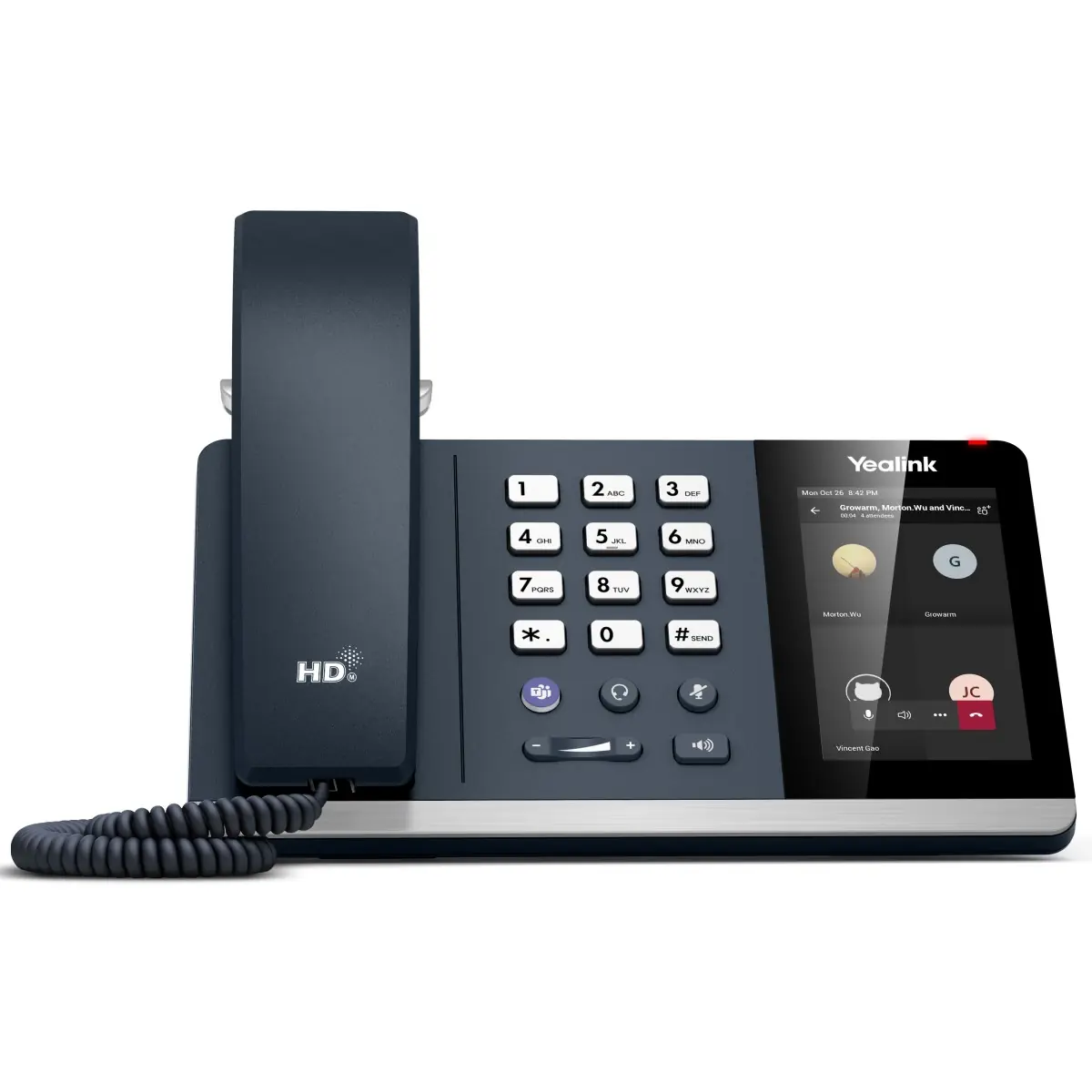 Le téléphone MP54 Teams est l'entrée de gamme d'un produit innovant issu du constructeur Yealink : les téléphones IP. Doté d'un écran capacitif tactile de 4" (800x480 pixels), le téléphone bénéficie d'un design nouveau et en accord avec son temps. Disposant d'un clavier intégral plus classique, sa particularité ne provient pas seulement du fait qu'il soit certifié Teams, mais du bouton dédié permettant d'interagir directement avec l'application Microsoft.