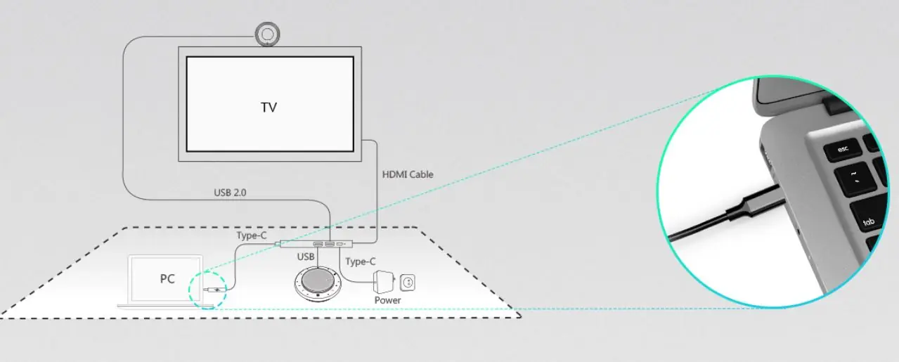 Très facile à installer, vous pouvez accrocher la UVC30 Room sur le dessus de votre écran de visioconférence grâce au clip prévu à cet effet.