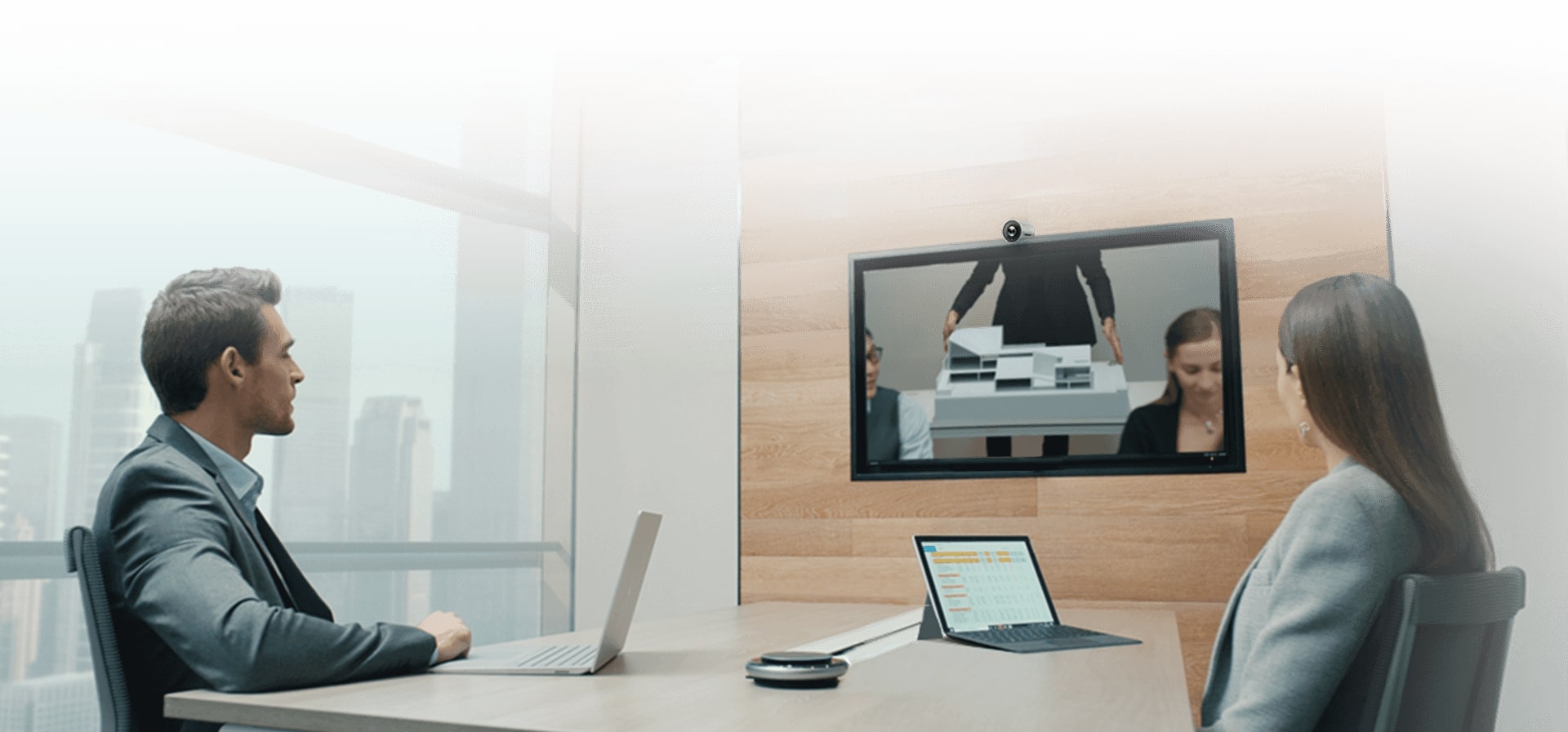 Très facile à installer, vous pouvez accrocher la UVC30 Room sur le dessus de votre écran de visioconférence grâce au clip prévu à cet effet.