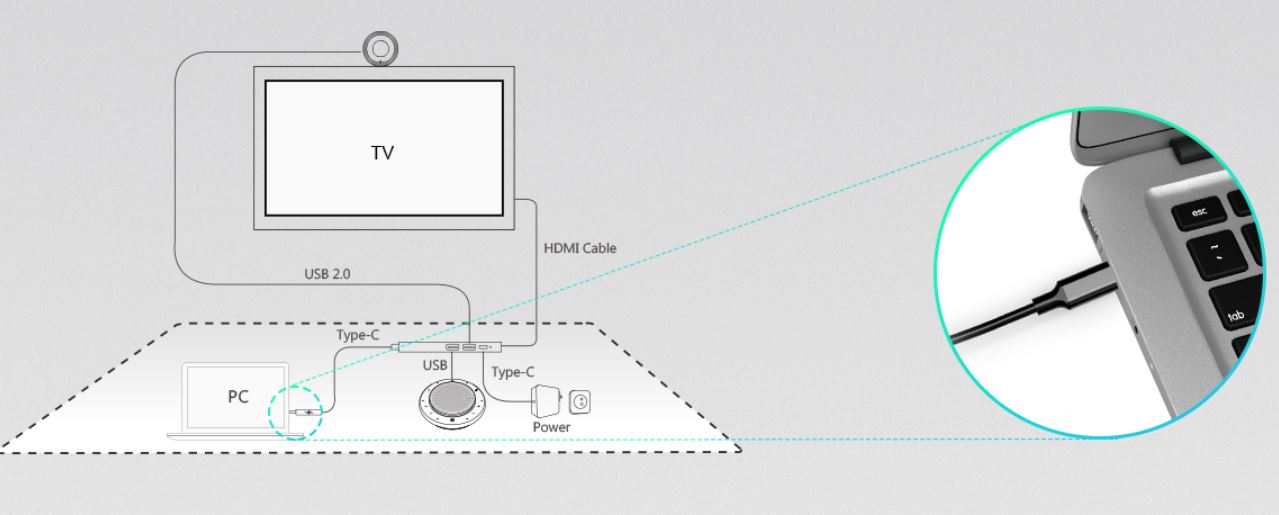 Ce pack, certifié Microsoft Teams, inclut également un HUB qui vous permet de brancher simplement et rapidement votre ordinateur et de lancer la réunion en un instant.
