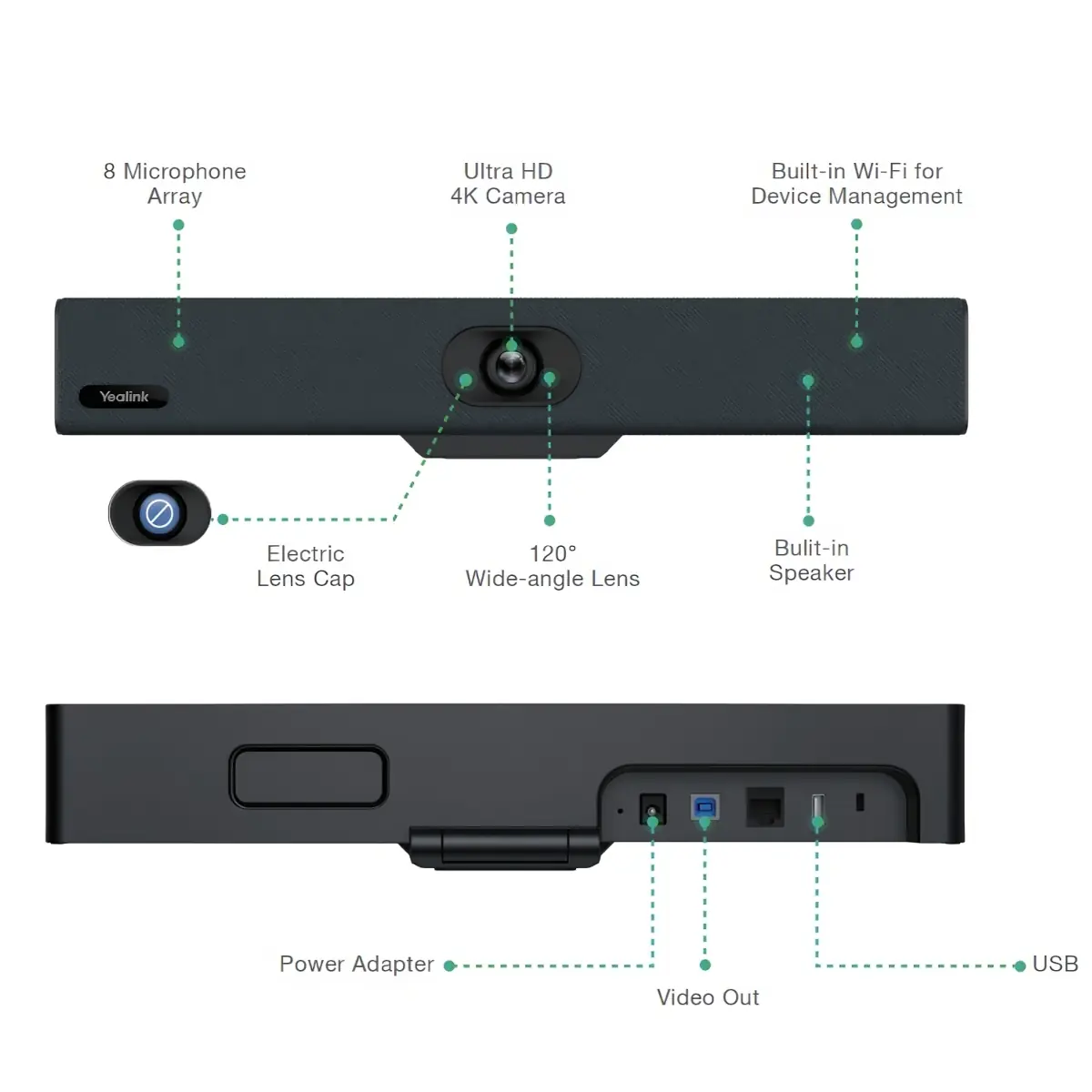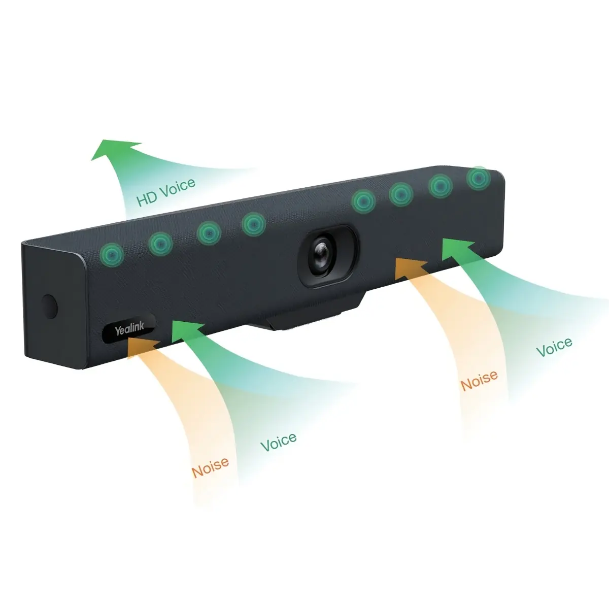 La barre de visioconférence Yealink UVC34 inclut une caméra intelligente UHD 4K, 8 microphones et un puissant haut-parleur. Idéale pour un usage personnel, une huddle room ou une petite salle de réunion, elle se branche simplement en USB sur un PC ou un Mac.