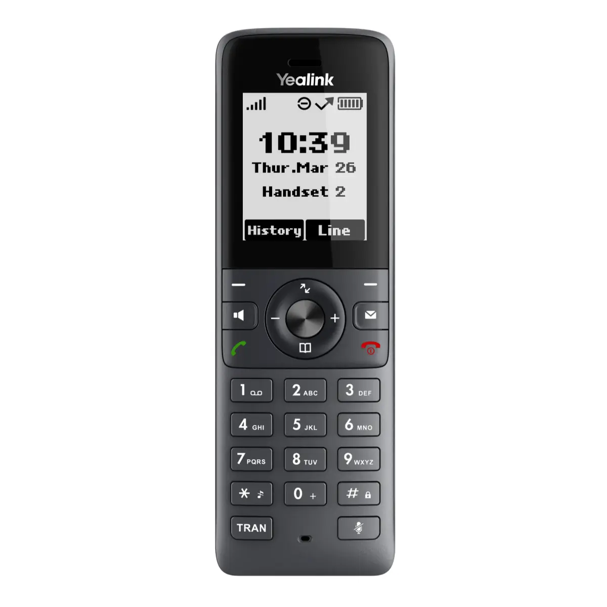 Le combiné DECT Yealink W71H se distingue par son design compact et moderne, offrant une utilisation agréable. Il estquipé d'un écran noir et blanc de 1,8 pouces (90x65) avec une interface utilisateur intuitive. La batterie lithium-ion de 1 010 mAh garantit une autonomie offrant jusqu'à 30 heures en conversation et 340 heures en veille, ce qui assure une utilisation prolongée sans besoin de recharge fréquente. En outre, le combiné est doté d'un haut-parleur full duplex et est conforme aux aides auditives (HAC), rendant les conversations accessibles pour tous les utilisateurs.